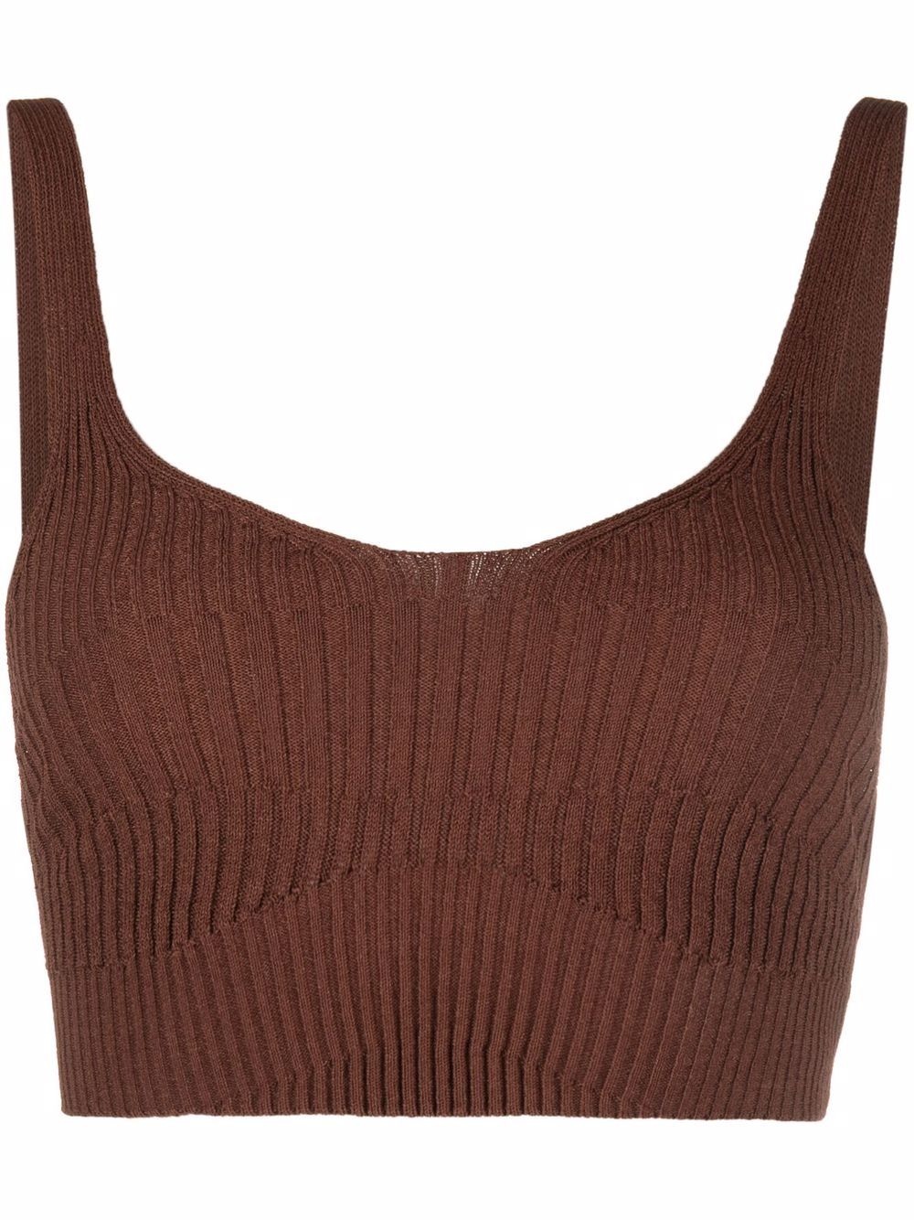Joan rib-knit crop top This Joan rib-knit top from AERON feels contemporary in its cropped silhouette and enriched through the dark chocolate brown hue. Imported Composition Viscose 76%, Nylon 24% SIZE & FIT Model measurements Height 5 ft 10 in(1.77 m) Bust/Chest 31.49 in(80 cm) Hips 34.64 in(88 cm) Waist 24.4 in(62 cm) FittingInformation This piece fits true to size. We recommend you get your regular size Cut for a close fit Made with a mid-weight fabric Washing instructions Dry Clean Only