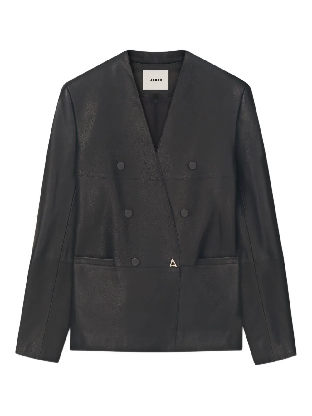Lilith double-breasted leather jacket Highlights - Black - Leather - Double-breasted - Button fastening - V-neck - Front pockets Imported Composition Outer: Leather 100%, Polyester 100% Lining: Viscose 100% Washing instructions Read Manufacturer Guidelines