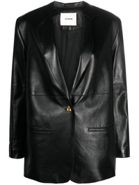 Mercedes leather blazer Renowned for timeless staples, Aeron introduces its Mercedes blazer. Crafted from distinctively soft lambskin, its classic, boxy silhouette is accentuated with the brand's signature golden triangle-shaped button. Highlights - Black - Lambskin - Notched lapels - V-neck - Front button fastening - Long sleeves - Two front jetted pockets - Straight hem Imported Composition Outer: Lambskin 100% Lining: Viscose 100% SIZE & FIT Model measurements Height 5 ft 10 in(1.77 m) Bust/Chest 31.1 in(79 cm) Hips 34.64 in(88 cm) Waist 24.8 in(63 cm) FittingInformation Designed for a boxy fit, intended for a loose fit throughout The internal shoulder pads offer a structured shape Soft leather has a supple and smooth construction offering some flexibility This piece fits true to size – take your usual size