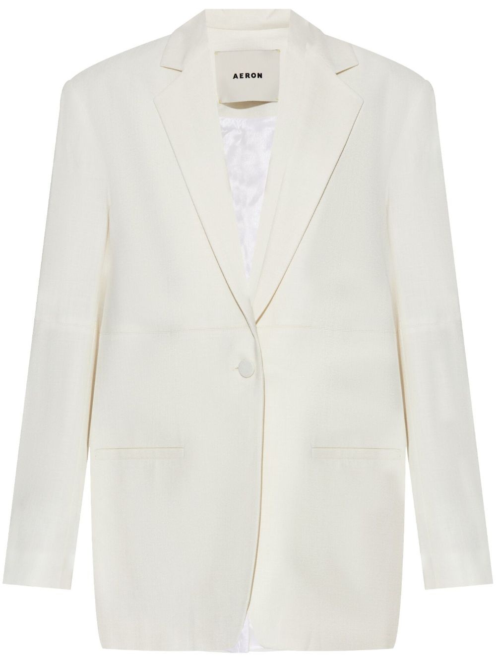 Mercedes suiting blazer Highlights - White - Ecovero™ viscose - Peak lapels - Front button fastening - Long sleeves - Buttoned cuffs - Two side flap pockets - Straight hem Imported Composition Viscose 100% SIZE & FIT FittingInformation Designed to be unstructured, offering a loose fit throughout The internal shoulder pads offer a structured shape Made from a midweight fabric