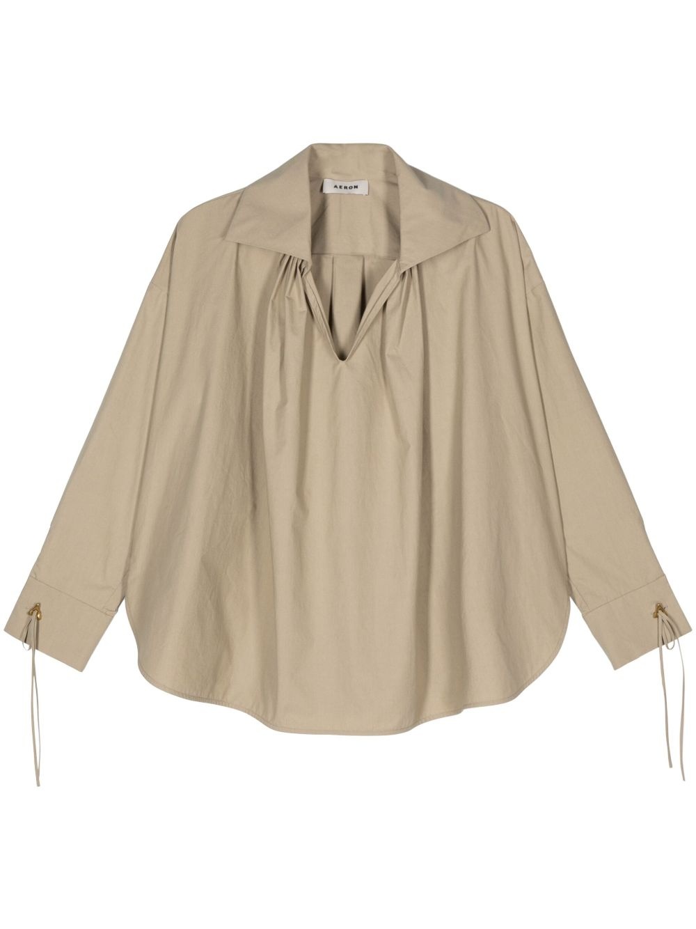 Paige poplin blouse Highlights - Olive green - Organic cotton - Poplin texture - Wide spread collar - V-neck - Ruched detailing - Drop shoulder - Long sleeves with buttoned tied cuffs - Gold-tone logo buttons - Inverted pleat to the rear - Curved hem Imported Composition Organic Cotton 100%