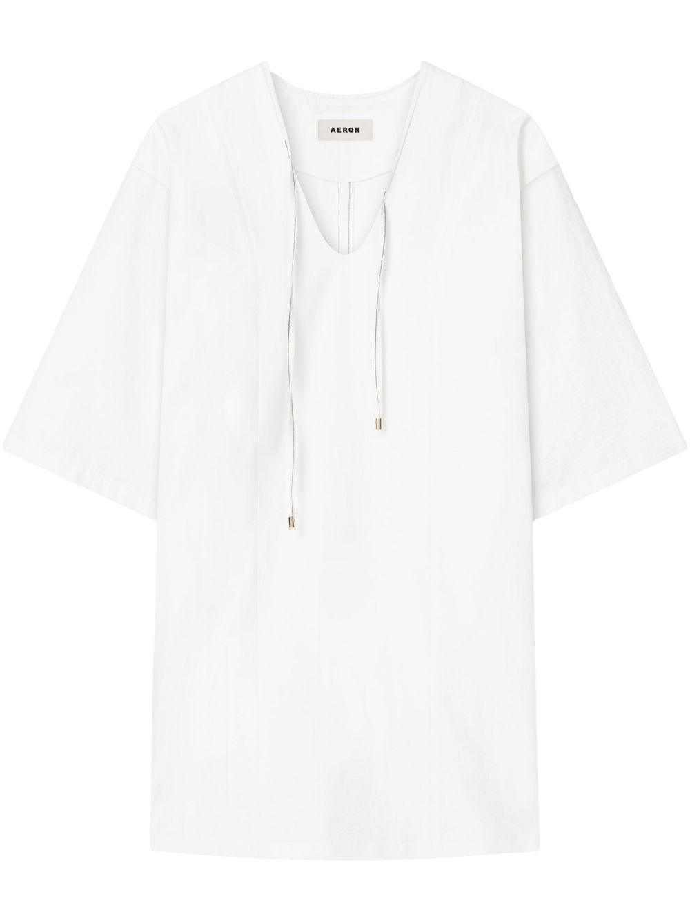 poplin dress Highlights - White - V-neck - Short sleeves Imported Composition Cotton 89%, Polyamide 11%