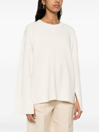 Priam ribbed jumper Highlights - Cream white - Merino wool-cotton blend - Ribbed knit - Ribbed trim - Round neck - Drop shoulder - Long wide sleeves - Split cuffs - Straight hem - Unlined Imported Composition Merino 50%, Cotton 50% SIZE & FIT Model measurements Height 5 ft 9 in(1.76 m) Bust/Chest 31.1 in(79 cm) Hips 36.61 in(93 cm) Waist 24.8 in(63 cm) FittingInformation Designed to be unstructured, offering a loose fit throughout Made with a midweight knit, this piece offers some stretch This piece fits true to size – take your usual size