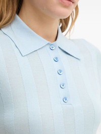 ribbed polo top Highlights - Light blue - Short sleeves - Polo collar - Button fastening - Ribbed texture Imported Composition Merino 75%, Lyocell 25% Washing instructions Read Manufacturer Guidelines