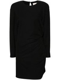 Rosamund interwoven dress Highlights - Black - Ecovero™ blend - Stretch-design - Interwoven design - Ruched detailing to the side - Draped detailing - Keyhole detail to the rear - Round neck - Shoulder pads - Long sleeves - Buttoned cuffs - Knee-length - Single rear button fastening - Straight hem - Full lining Imported Composition Polyester 100% SIZE & FIT Model measurements Height 5 ft 9 in(1.76 m) Bust/Chest 31.1 in(79 cm) Hips 36.61 in(93 cm) Waist 24.8 in(63 cm) FittingInformation Designed for a loose fit at the chest with a close fit over the waist and hips The internal shoulder pads offer a structured shape Made from a midweight fabric This piece fits true to size – take your usual size