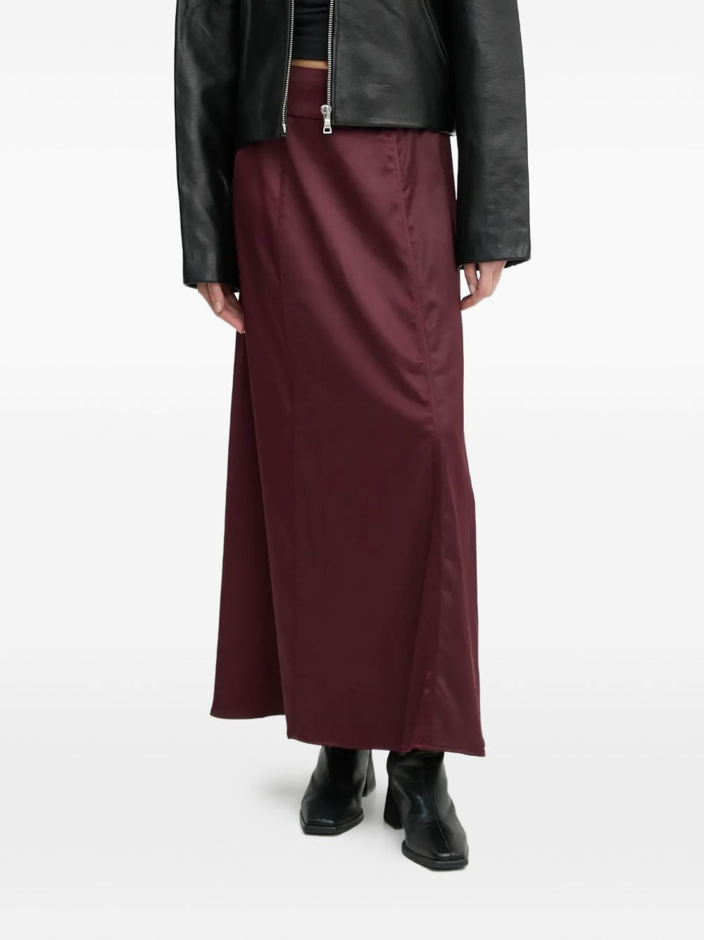 satin-panelled maxi skirt Highlights - Burgundy - Centre-back seam - Concealed rear zip fastening - A-line shape Imported Composition Recycled Polyester 53%, Polyester 44%, Elastane 3% Washing instructions Read Manufacturer Guidelines