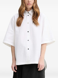 short-sleeve curved hem shirt Highlights - White - Curved hem - Short sleeves - Button fastening - Contrast stitching - Gold-tone embellishment Imported Composition Cotton 89%, Polyamide 11% Washing instructions Read Manufacturer Guidelines