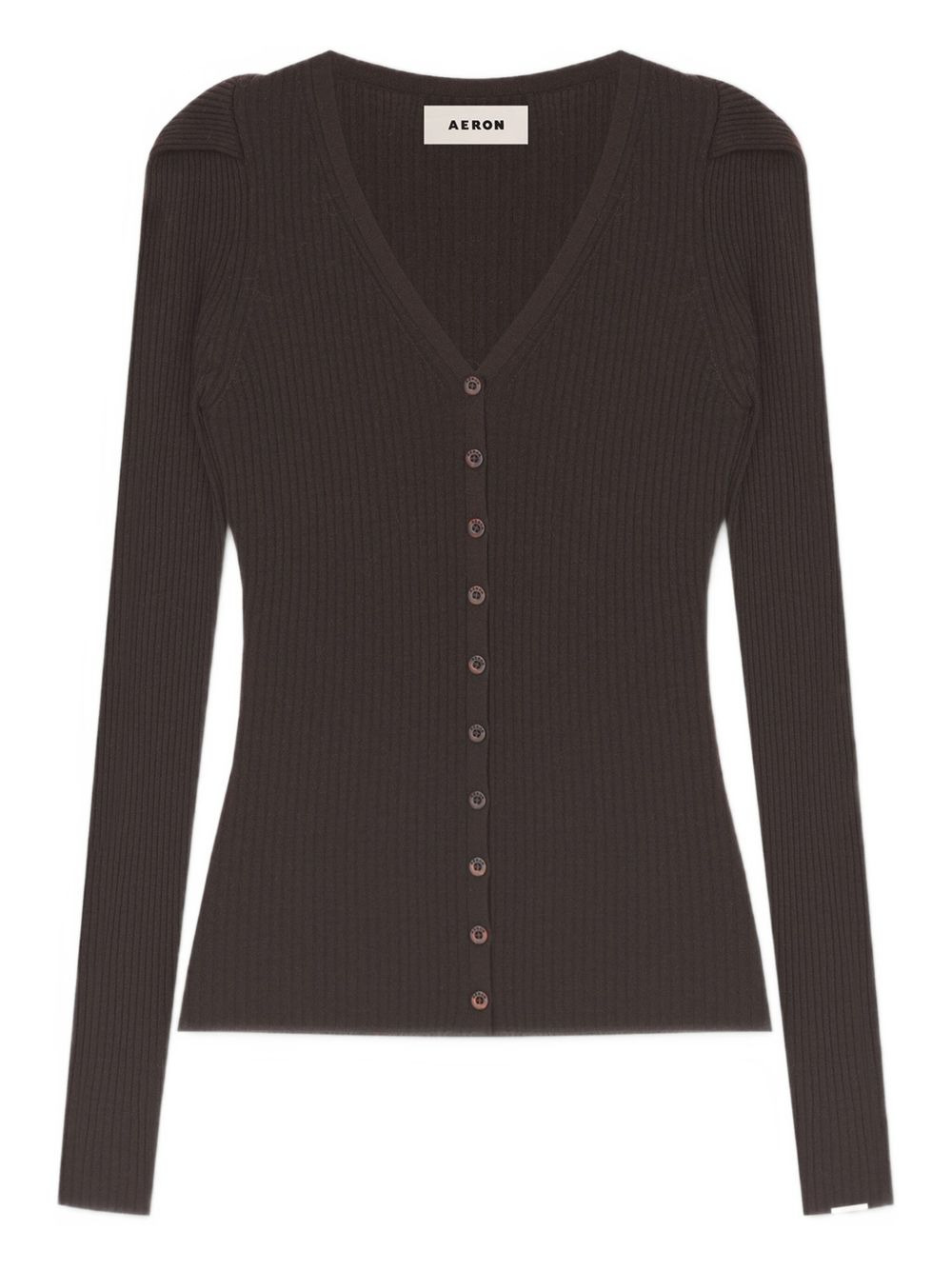V-neck button-fastening cardigan Highlights - Brown - V-neck - Ribbed knit - Long sleeves - Button fastening - Straight hem Imported Composition Wool 100% Washing instructions Read Manufacturer Guidelines