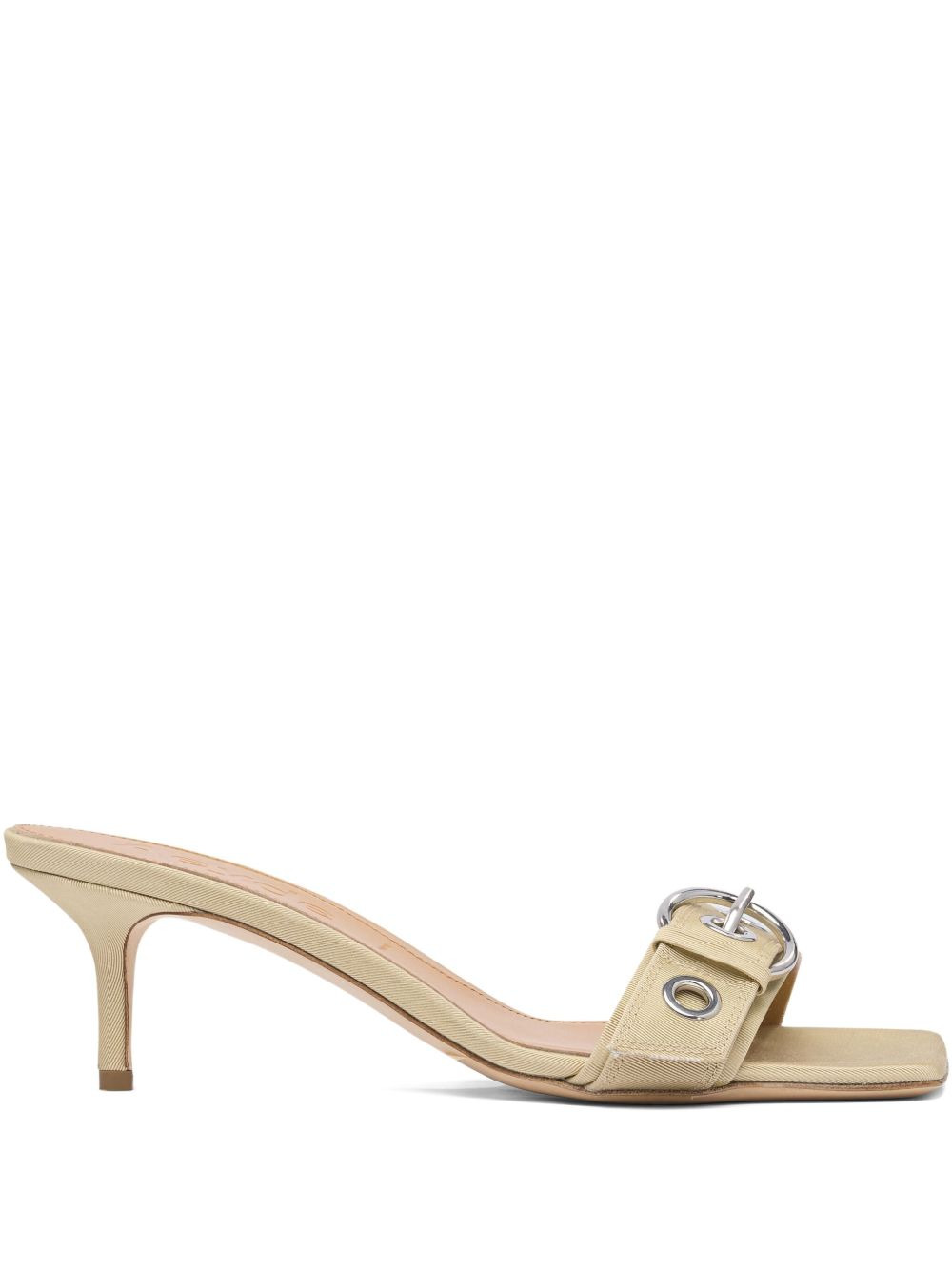 55mm Ilvy buckle-detail square-toe sandals Highlights - Light beige - Grosgrain fabric - Square toe - Buckle fastening - Eyelets detail Made in Italy Composition Outer: Fabric 100% Sole: Calf Leather 100% Lining: Calf Leather 100%