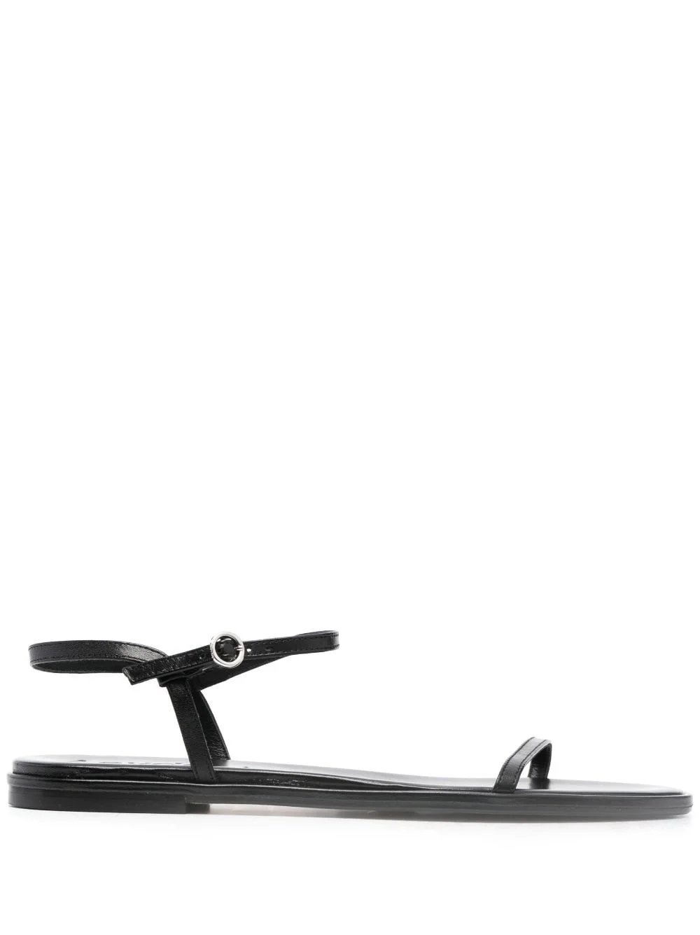 Nettie leather sandals Aeyde is known for its expert footwear. This is finely demonstrated by these sandals, thanks to a leather construction that is complete with a buckle-fastening ankle strap. Highlights - Black - Calf leather - Grained texture - Open toe - Slingback strap - Branded footbed - Low stacked heel - Leather outsole - Buckle-fastening ankle strap Made in Italy Composition Sole: Calf Leather 100% Lining: Calf Leather 100% Outer: Calf Leather 100% SIZE & FIT Measurement HEEL 0.59 in(1.5 cm)