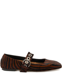 Uma zebra-print ballet flats Highlights - Brown - Zebra pattern - Eyelet details - Buckle fastening - Pony fur upper - Flat sole Made in Italy Composition Sole: Rubber 100% Lining: Leather 100% Outer: Pony Fur 100%