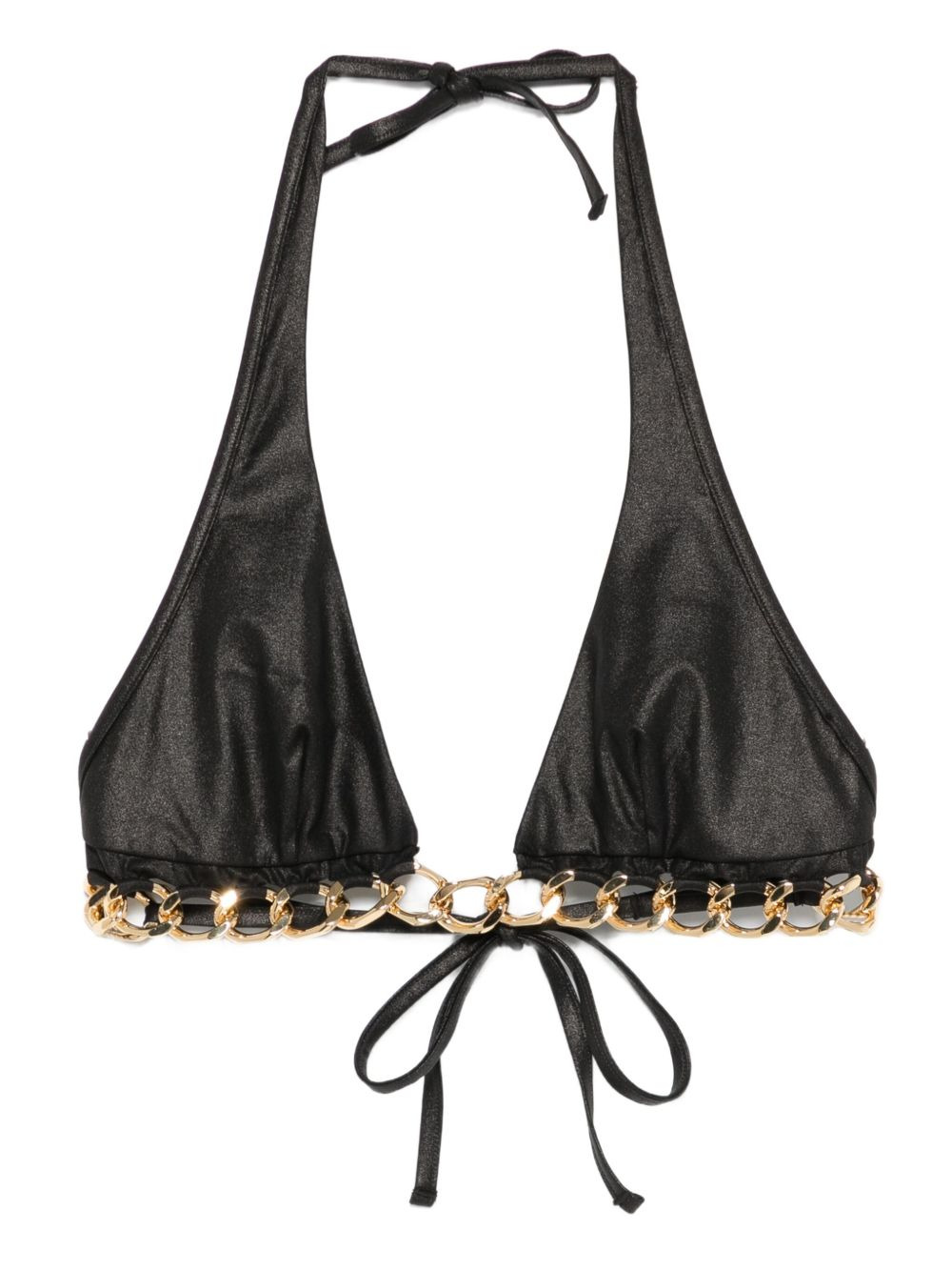 chain-embellished bikini top Highlights - Black - Halterneck - Gold chain detail - Tie fastening - Triangle cups - Be mindful to try on swimwear over your own garments. Imported Composition Outer: Polyamide 63%, Elastane 37% Lining: Polyester 86%, Elastane 14% Washing instructions Read Manufacturer Guidelines