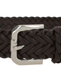 woven buckle belt Highlights - Chocolate brown - Woven - Silver-tone hardware - Adjustable buckle Made in Italy Composition Calf Leather 100%