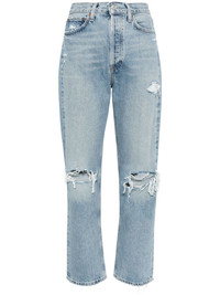 '90s Pinch Waist straight-leg jeans Highlights - Light blue - Cotton - Denim - Distressed effect - High-waisted - Belt loops - Classic five pockets - Logo patch to the rear - Straight leg - Cropped Imported Composition Body: Cotton 100% SIZE & FIT Model measurements Height 5 ft 9 in(1.75 m) Bust/Chest 31.88 in(81 cm) Hips 35.03 in(89 cm) Waist 23.22 in(59 cm) FittingInformation Designed for a straight-leg fit, these jeans allow for a close fit at the waist and an unrestricted and comfortable fit over the leg Sturdy and hard-wearing, this denim piece offers no stretch This piece fits true to size – take your usual size Washing instructions Machine Wash