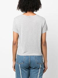 Adine Shrunken cropped T-shirt Highlights - Light grey - Cropped - Crew neck - Short sleeves - Straight hem Made in United States Composition Rayon 90%, Polyester 10% SIZE & FIT Model measurements Height 5 ft 10 in(1.77 m) Bust/Chest 31.49 in(80 cm) Hips 36.22 in(92 cm) Waist 22.44 in(57 cm) Measurement SLEEVE LENGTH 0.98 in(2.5 cm) LENGTH 19.29 in(49 cm) WAIST 37.79 in(96 cm) BUST 39.37 in(100 cm) Shoulder Width 16.14 in(41 cm) FittingInformation Designed for a slim fit that sits just away from the body offering a close yet comfortable fit Made from a lightweight non-stretch fabric, this piece offers minimal elasticity when worn This piece fits true to size – take your usual size