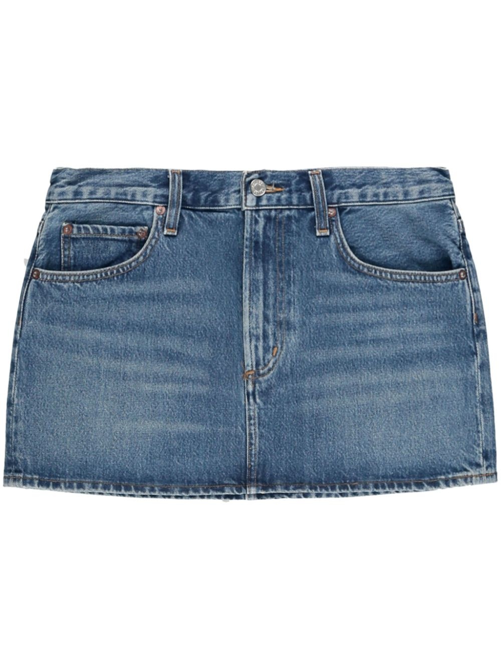 Alek mini skirt Highlights - Indigo blue - Recycled cotton - Whiskering effect at the thighs - Front button and zip fastening - Leather tag - Belt loops - Classic five pockets Imported Composition Regenerative Cotton 100%