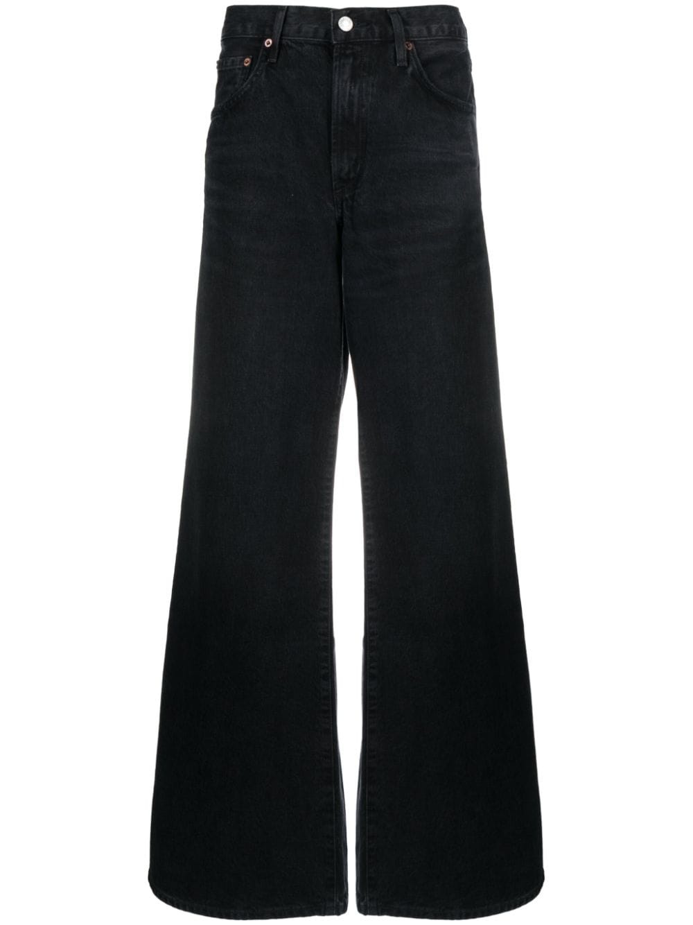 Clara wide-leg jeans Highlights - Black - Organic cotton - Denim - Whiskering effect - High-waisted - Concealed fly and button fastening - Classic five pockets - Wide leg - Long length - Straight hem Imported Composition Organic Cotton 100% SIZE & FIT Model measurements Height 5 ft 10 in(1.77 m) Bust/Chest 32.28 in(82 cm) Hips 35.03 in(89 cm) Waist 25.19 in(64 cm) FittingInformation Designed with a wide leg cut, these jeans allow for a close fit at the waist and offer a loose and roomy fit over the leg Sturdy and hard-wearing, this denim piece offers no stretch This piece fits true to size – take your usual size Measurement FRONT RISE 10.23 in(26 cm) INSIDE LEG 32.28 in(82 cm) HIPS 39.37 in(100 cm) WAIST 32.28 in(82 cm) Washing instructions Machine Wash