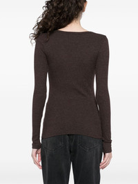 Corey scoop-neck T-shirt Highlights - Chocolate brown - Knitted construction - Scoop neck - Long sleeves - Straight hem Made in United States Composition Polyester 50%, Cotton 32%, Rayon 18% SIZE & FIT Model measurements Height 5 ft 10 in(1.79 m) Bust/Chest 31.88 in(81 cm) Hips 36.22 in(92 cm) Waist 24.4 in(62 cm) FittingInformation Designed for a close fit throughout Made with a lightweight knit, this piece offers some stretch Washing instructions Hand Wash