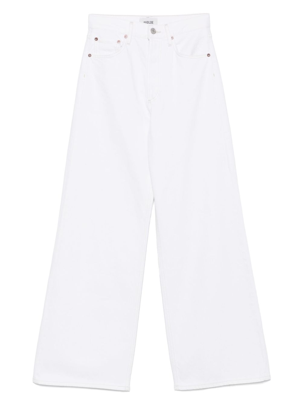 cotton jeans Highlights - White - Front button fastening - Classic five pockets - Belt loops - Wide leg Imported Composition Cotton 100% SIZE & FIT Model measurements Height 5 ft 10 in(1.79 m) Bust/Chest 33.07 in(84 cm) Hips 35.82 in(91 cm) Waist 24.01 in(61 cm) FittingInformation Designed with a wide leg cut, these jeans allow for a close fit at the waist and offer a loose and roomy fit over the leg Sturdy and hard-wearing, this denim piece offers no stretch Washing instructions Machine Wash
