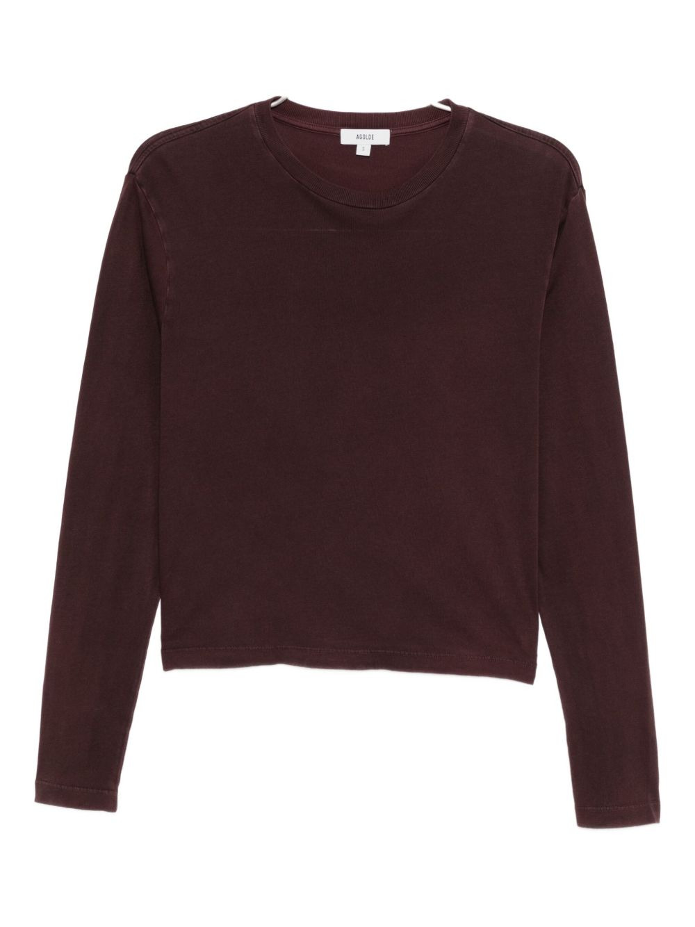 cotton t-shirt Highlights - Burgundy - Crew neck - Long sleeves - Straight hem Made in United States Composition Cotton 100% SIZE & FIT Model measurements Height 5 ft 11 in(1.8 m) Bust/Chest 30.7 in(78 cm) Hips 36.22 in(92 cm) Waist 25.59 in(65 cm) FittingInformation Designed for a relaxed fit, this piece allows for comfort and movement when worn Made from a lightweight non-stretch fabric, this piece offers minimal elasticity when worn Washing instructions Hand Wash