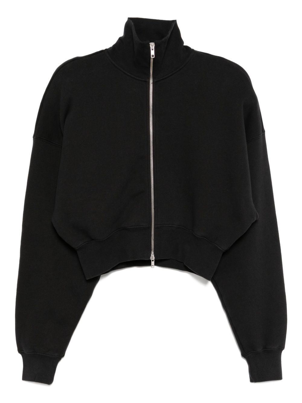 Darby jacket Highlights - Black - Front zip fastening - Ribbed cuffs and hem - Turtleneck - Long sleeves Imported Composition Cotton 100% SIZE & FIT Model measurements Height 5 ft 10 in(1.78 m) Bust/Chest 30.31 in(77 cm) Hips 37 in(94 cm) Waist 24.8 in(63 cm) FittingInformation Designed for a boxy fit, intended for a loose fit throughout The ribbed hem offers a close, comfortable fit Made from a midweight non-stretch fabric, this piece offers minimal elasticity when worn Washing instructions Machine Wash