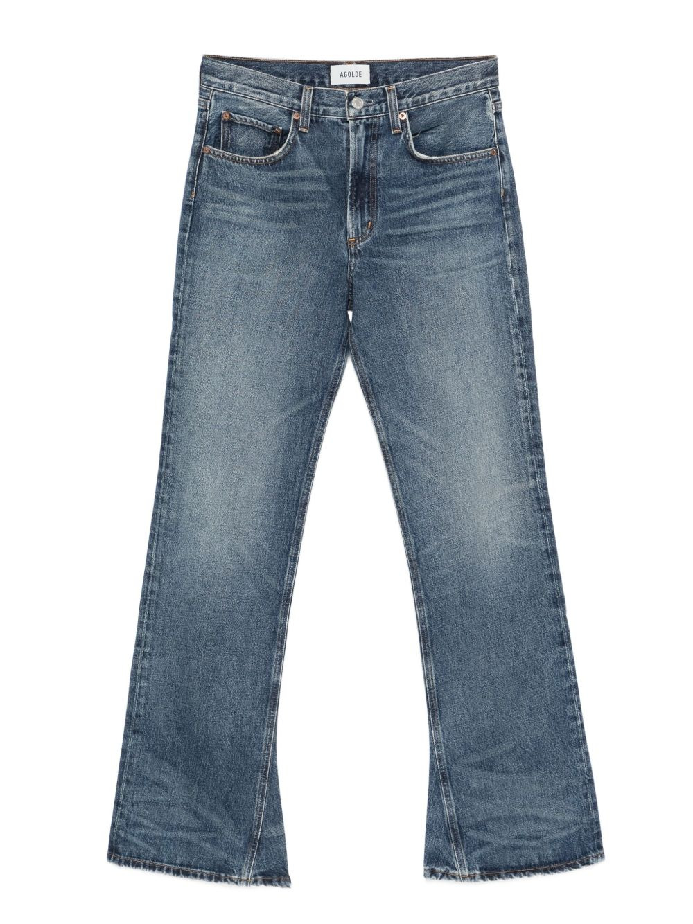 flared regenerative-cotton jeans Highlights - Blue - Regenerative cotton - Flared leg - High waist - Five pockets Imported Composition Regenerative Cotton 100% SIZE & FIT Model measurements Height 5 ft 10 in(1.77 m) Bust/Chest 33.07 in(84 cm) Hips 37 in(94 cm) Waist 24.8 in(63 cm) Washing instructions Machine Wash