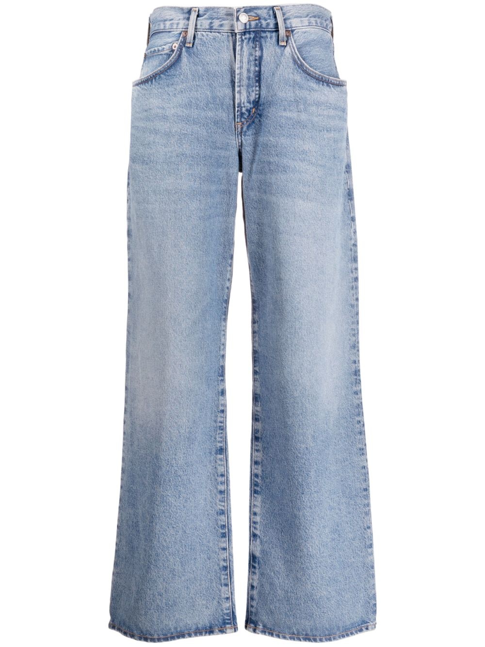 Fusion organic cotton jeans AGOLDE's relaxed, nonchalant attitude is expressed in these stonewashed Fusion jeans through their slouchy, low-rise fit and laidback wide-leg silhouette. Highlights - Light blue - Organic cotton - Stonewashed - Front button and zip fastening - Belt loops - Classic five pockets - Wide leg - Straight hem Imported Composition Organic Cotton 100% SIZE & FIT Model measurements Height 5 ft 10 in(1.77 m) Bust/Chest 32.67 in(83 cm) Hips 35.43 in(90 cm) Waist 23.62 in(60 cm) Measurement FRONT RISE 10.23 in(26 cm) HIPS 41.73 in(106 cm) WAIST 31.49 in(80 cm) FittingInformation Designed with a wide leg cut, these jeans allow for a close fit at the waist and offer a loose and roomy fit over the leg Sturdy and hard-wearing, this denim piece offers no stretch This piece fits true to size – take your usual size