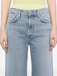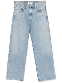 Harper cropped jeans Highlights - Light blue - Front button and zip fastening - Belt loops - Classic five pockets Imported Composition Regenerative Cotton 99%, Elastane 1% SIZE & FIT Model measurements Height 5 ft 9 in(1.76 m) Bust/Chest 31.1 in(79 cm) Hips 35.03 in(89 cm) Waist 24.4 in(62 cm) FittingInformation Designed with a wide leg cut, these jeans allow for a close fit at the waist and offer a loose and roomy fit over the leg Sturdy and hard-wearing, this denim piece offers no stretch