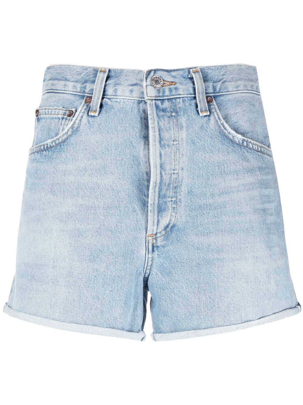 high-rise denim shorts Highlights - Light blue - Organic cotton - Denim - Belt loops - High-waisted - Front button fastening - Classic five pockets - Rolled cuffs - Thigh-length Imported Composition Organic Cotton 100% SIZE & FIT Model measurements Height 5 ft 10 in(1.78 m) Bust/Chest 31.49 in(80 cm) Hips 36.22 in(92 cm) Waist 25.59 in(65 cm) Measurement FRONT RISE 11.81 in(30 cm) HIPS 37 in(94 cm) WAIST 26.77 in(68 cm) FittingInformation Designed for a slim fit that sits just away from the body offering a close yet comfortable fit Sturdy and hard-wearing, this denim piece offers no stretch This piece fits true to size – take your usual size Washing instructions Machine Wash