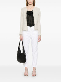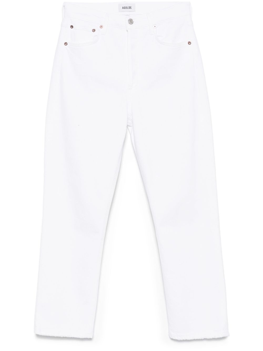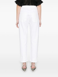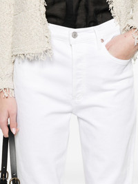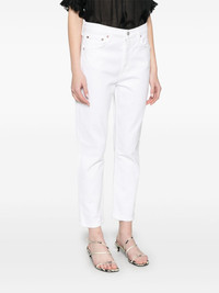 high-rise jeans Highlights - White - Concealed fly and button fastening - Classic five pockets - Belt loops - Rivet detailing Imported Composition Regenerative Cotton 98%, Elastane 2% SIZE & FIT Model measurements Height 5 ft 9 in(1.75 m) Bust/Chest 31.88 in(81 cm) Hips 34.64 in(88 cm) Waist 24.01 in(61 cm) FittingInformation Designed for a straight-leg fit, these jeans allow for a close fit at the waist and an unrestricted and comfortable fit over the leg Cropped in length Constructed from stretch denim, this piece offers a stretch fit with durability