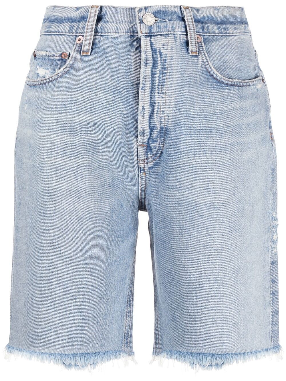high-rise knee-length jeans A premium denim brand at its core, Agolde freshens timeless silhouettes with a sense of modern appeal. As seen in these shorts, a high-waisted design has been given some extra flair with a frayed hem. Highlights - Blue - Organic cotton - High waist - Belt loops - Concealed front button fastening - Classic five pockets - Knee-length Imported Composition Organic Cotton 100% SIZE & FIT Model measurements Height 5 ft 10 in(1.77 m) Bust/Chest 31.49 in(80 cm) Hips 36.22 in(92 cm) Waist 22.44 in(57 cm) FittingInformation This piece fits true to size. We recommend you get your regular size Designed to be fitted at the waist and hips, loose over the leg Made with a mid-weight non-stretch fabric Washing instructions Machine Wash