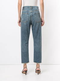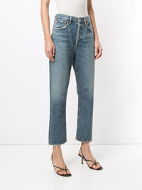 high rise Riley jeans Highlights - Blue - Cotton - Denim - Stonewashed - Frayed hem - Belt loops - Front button fastening - High waist - Straight leg - Cropped leg - Classic five pockets Made in United States Composition Cotton 100% SIZE & FIT Model measurements Height 5 ft 9 in(1.76 m) Bust/Chest 29.13 in(74 cm) Hips 33.07 in(84 cm) Waist 22.83 in(58 cm) Measurement FRONT RISE 11.22 in(28.5 cm) INSIDE LEG 25.98 in(66 cm) HIPS 40.55 in(103 cm) WAIST 32.28 in(82 cm) FittingInformation This piece fits true to size. We recommend you get your regular size Cut for a relaxed fit Made with a mid-weight fabric Washing instructions Machine Wash