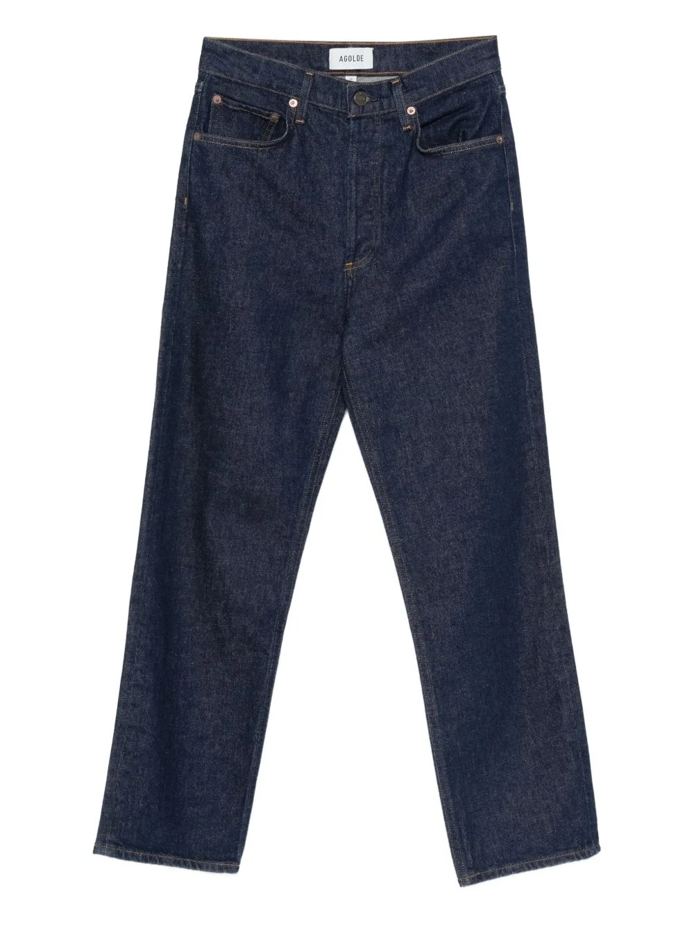 high rise straight jeans Highlights - Dark blue - High rise - Straight leg - Five pockets - Belt loops - Button fastening Imported Composition Regenerative Cotton 99%, Elastane 1% SIZE & FIT Model measurements Height 5 ft 9 in(1.76 m) Bust/Chest 31.88 in(81 cm) Hips 35.43 in(90 cm) Waist 24.8 in(63 cm) Washing instructions Machine Wash