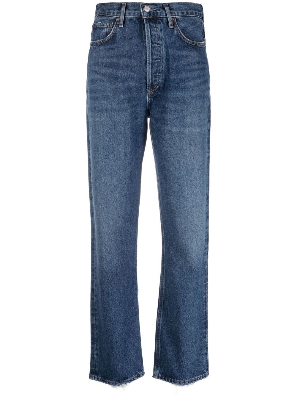 high-waisted straight-leg jeans Exhibiting a classic high-waisted silhouette, these jeans by AGOLDE are crafted in a soft cotton fabrication. The tonal design is complete with a raw-cut edge for a laid-back finish. Highlights - Blue - Organic cotton - High-waisted - Classic five pockets - Belt loops - Raw-cut edge - Front button fastening Imported Composition Organic Cotton 100% SIZE & FIT Model measurements Height 5 ft 10 in(1.78 m) Bust/Chest 30.31 in(77 cm) Hips 36.61 in(93 cm) Waist 24.8 in(63 cm) Measurement FRONT RISE 12.59 in(32 cm) INSIDE LEG 29.52 in(75 cm) HIPS 34.64 in(88 cm) FittingInformation This piece fits true to size. We recommend you get your regular size Designed to be fitted at the waist and hips, loose over the leg Made with a mid-weight non-stretch fabric Washing instructions Dry Clean Only