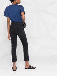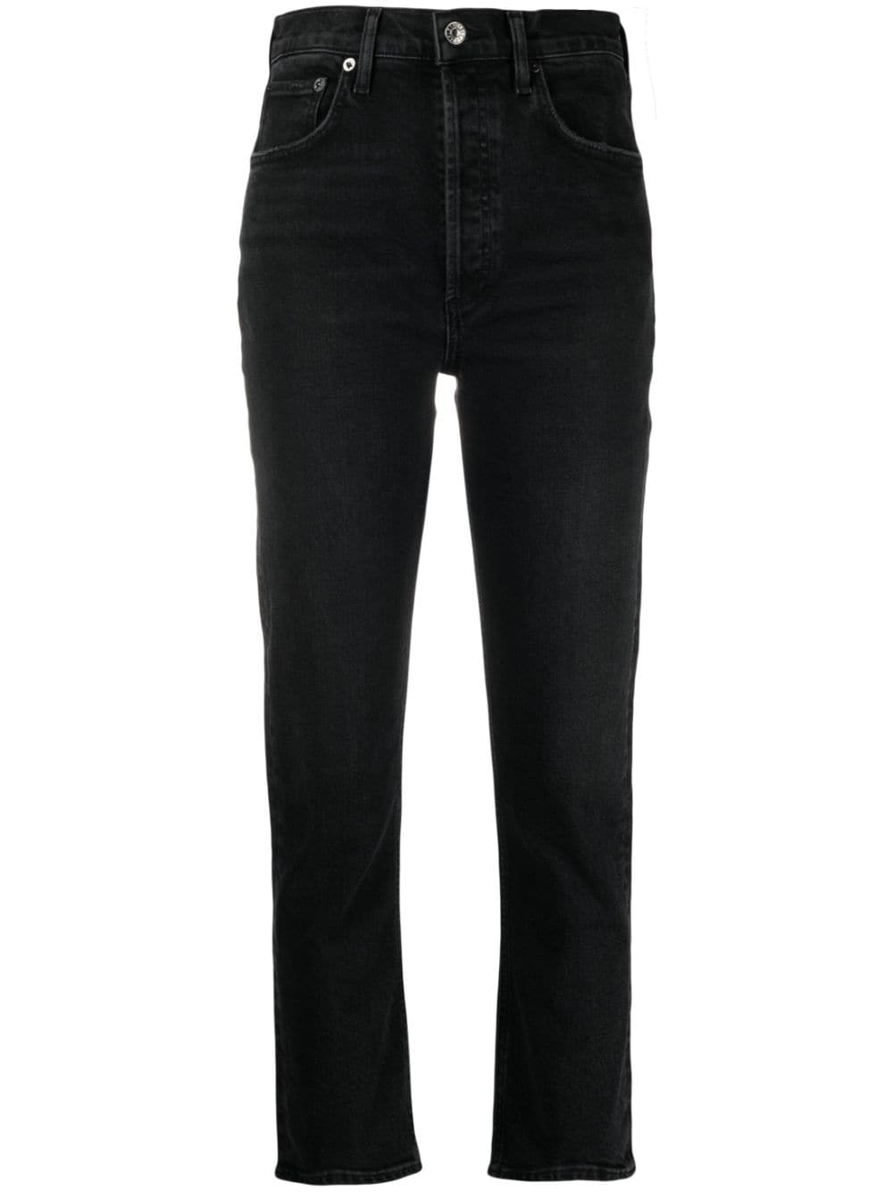 high-waisted straight-leg jeans Committed to mixing design, sustainability and comfort in perfect harmony, Agolde presents another denim staple. In a high-waisted design, these jeans have been constructed from an organic cotton blend for added range of motion. Highlights - Black - Organic cotton-blend - High waist - Belt loops - Front button and zip fastening - Classic five pockets - Straight leg Imported Composition Organic Cotton 59%, Viscose 40%, Spandex/Elastane 1% SIZE & FIT Model measurements Height 5 ft 11 in(1.8 m) Bust/Chest 31.88 in(81 cm) Hips 35.03 in(89 cm) Waist 24.01 in(61 cm) FittingInformation This piece fits true to size. We recommend you get your regular size Cut for a slim fit Made with a mid-weight stretch fabric Washing instructions Machine Wash