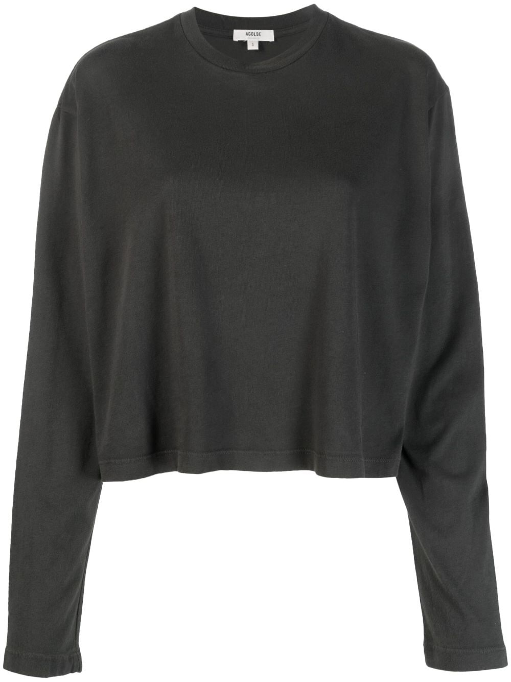 long-sleeve crop top Highlights - Moss green - Organic cotton - Jersey knit - Crew neck - Long sleeves - Straight hem - Cropped Made in United States Composition Organic Cotton 100% SIZE & FIT Model measurements Height 5 ft 10 in(1.77 m) Bust/Chest 32.28 in(82 cm) Hips 35.03 in(89 cm) Waist 25.19 in(64 cm) FittingInformation Designed to be unstructured, offering a loose fit throughout Made from a midweight non-stretch fabric, this piece offers minimal elasticity when worn Washing instructions Machine Wash