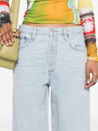 Low Slung Baggy cotton jeans Highlights - Light blue - Cotton - Denim - Whiskering effect at the thighs - Distressed finish - Belt loops - Classic five pockets - Straight leg - Front button fastening Imported Composition Regenerative Cotton 100% SIZE & FIT Model measurements Height 5 ft 10 in(1.78 m) Bust/Chest 32.67 in(83 cm) Hips 35.43 in(90 cm) Waist 23.22 in(59 cm) FittingInformation Designed with a wide leg cut, these jeans allow for a close fit at the waist and offer a loose and roomy fit over the leg Sturdy and hard-wearing, this denim piece offers no stretch This piece fits true to size – take your usual size Washing instructions Machine Wash