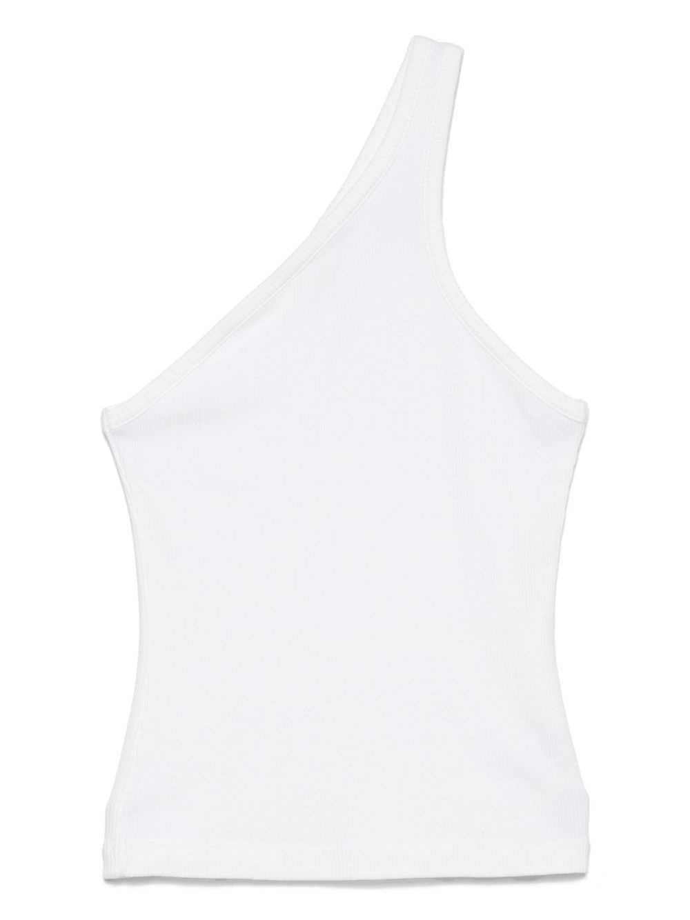 one-shoulder top Highlights - White - Ribbed knit - Sleeveless - Straight hem Made in United States Composition Organic Cotton 49%, Lyocell 49%, Elastane 2% SIZE & FIT Model measurements Height 5 ft 11 in(1.8 m) Bust/Chest 31.49 in(80 cm) Hips 35.82 in(91 cm) Waist 24.8 in(63 cm) FittingInformation Designed for a slim fit that sits just away from the body offering a close yet comfortable fit Made from a midweight non-stretch fabric, this piece offers minimal elasticity when worn