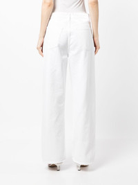organic-cotton wide-leg trousers Highlights - White - Organic cotton - Front button and zip fastening - Classic five pockets - Belt loops - Wide leg Made in United Kingdom Composition Outer: Organic Cotton 100% SIZE & FIT Model measurements Height 5 ft 11 in(1.8 m) Bust/Chest 28.34 in(72 cm) Hips 35.43 in(90 cm) Waist 23.62 in(60 cm) FittingInformation This piece fits true to size. We recommend you get your regular size Designed to be fitted at the waist, loose over the leg Made with a mid-weight non-stretch fabric Washing instructions Machine Wash