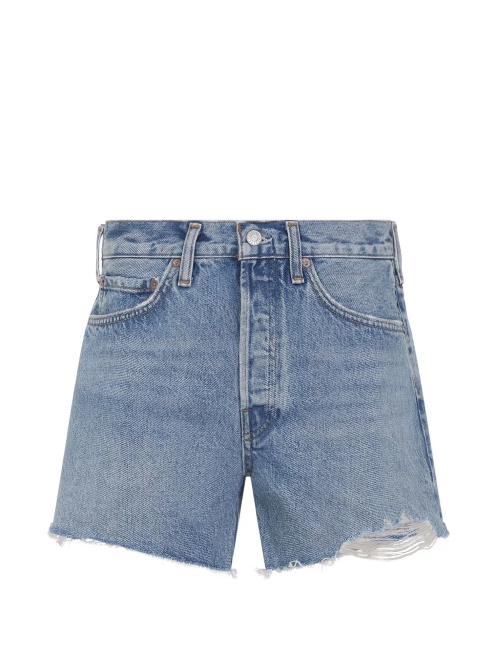Parker denim shorts Highlights - Indigo blue - Frayed hem - Button fastening - Five pockets Imported Composition Bottoms: Cotton 100%