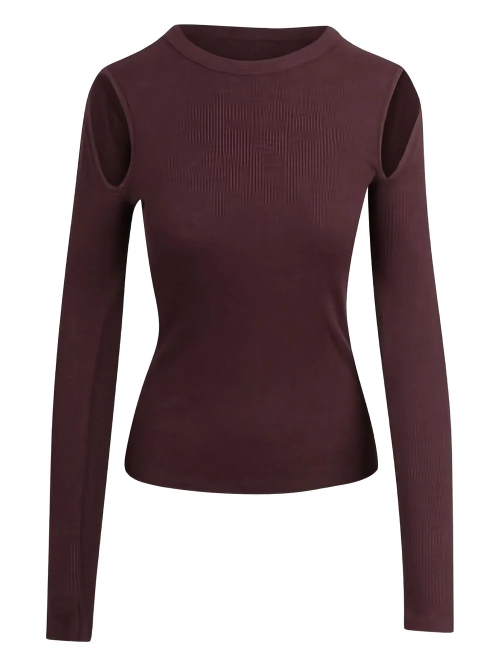 Pierce cut-out longsleeve T-shirt Highlights - Dark brown - Cut-out shoulder detail - Crew neck Made in United States Composition Polyester 50%, Cotton 32%, Rayon 18% Washing instructions Machine Wash