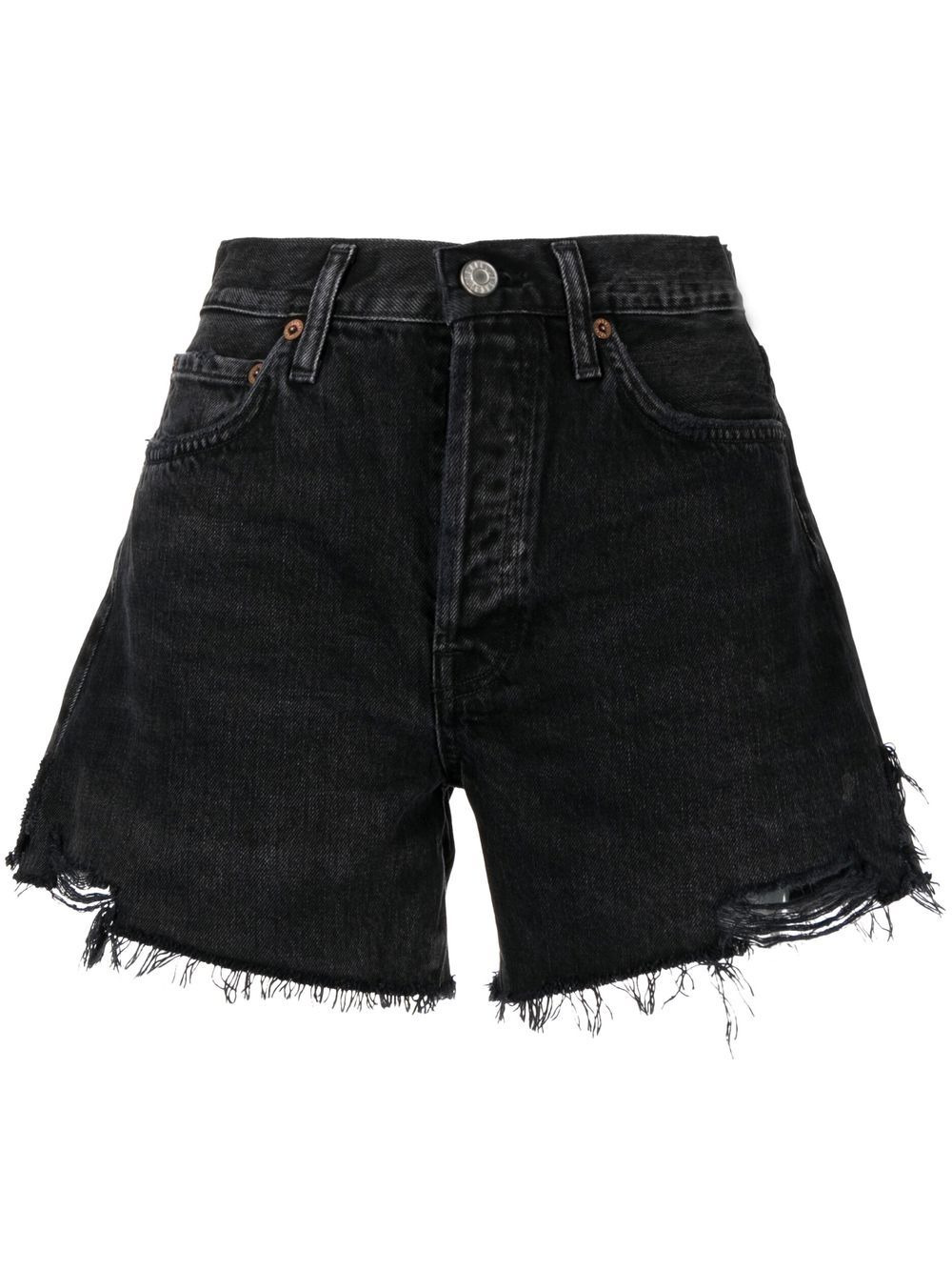 raw-cut denim shorts AGOLDE presents its own take on a signature style with these black denim shorts. Crafted from organic cotton, this high-rise pair are designed with frayed hems for a slightly edgier finish. Highlights - Black - Organic cotton - High waist - Raw-cut hem - Belt loops - Concealed fly and button fastening - Classic five pockets Made in United States Composition Organic Cotton 100% SIZE & FIT Model measurements Height 5 ft 9 in(1.74 m) Bust/Chest 31.49 in(80 cm) Hips 35.43 in(90 cm) Waist 24.8 in(63 cm) FittingInformation This piece fits true to size. We recommend you get your regular size Designed to be fitted at the waist, loose over the leg Made with a mid-weight fabric Washing instructions Machine Wash