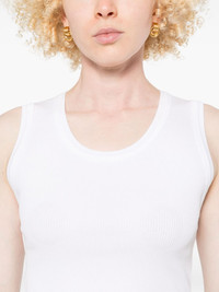ribbed tank top Highlights - White - Crew neck - Sleeveless Made in United States Composition Organic Cotton 49%, Lyocell 49%, Spandex/Elastane 2% SIZE & FIT Model measurements Height 5 ft 9 in(1.75 m) Bust/Chest 34.64 in(88 cm) Hips 36.61 in(93 cm) Waist 26.37 in(67 cm) FittingInformation Designed for a close fit throughout Made from a midweight non-stretch fabric, this piece offers minimal elasticity when worn Washing instructions Hand Wash