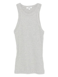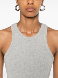 ribbed tank top Highlights - Grey - Ribbed knit - Crew neck - Racer back - Sleeveless - Straight hem Made in United States Composition Lyocell 49%, Organic Cotton 49%, Elastane 2% SIZE & FIT Model measurements Height 5 ft 10 in(1.77 m) Bust/Chest 33.07 in(84 cm) Hips 37 in(94 cm) Waist 24.8 in(63 cm) FittingInformation Designed for a close fit throughout Made from a midweight stretch fabric, this piece offers elasticity and flexibility when worn Washing instructions Machine Wash