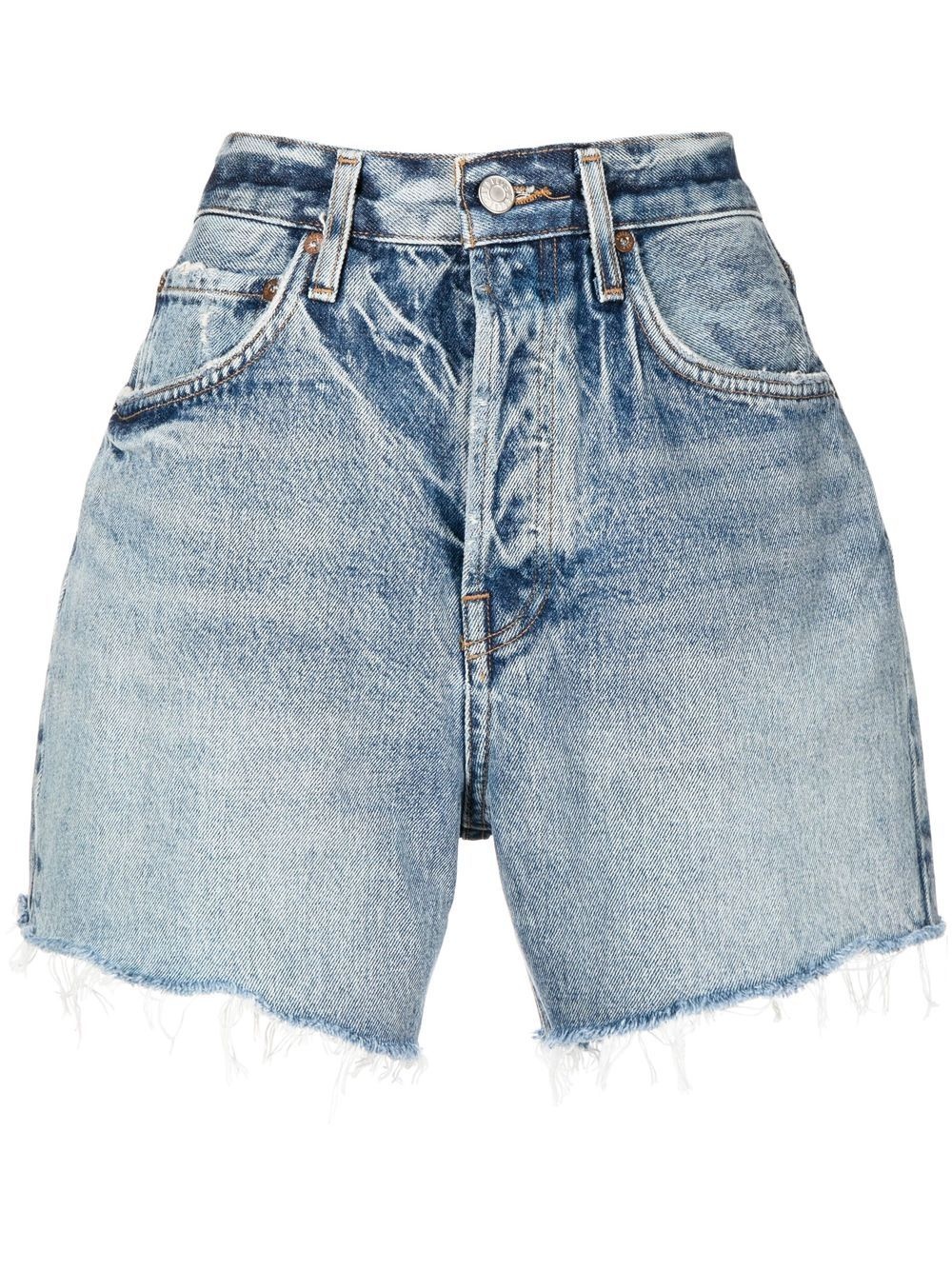 Riley cut-off denim shorts AGOLDE presents its own take on a signature style with these Riley cut-off denim shorts. Crafted from organic cotton, this high-rise pair are designed with raw-cut hems for a slightly edgier finish. Highlights - Riley cut-off denim shorts from agolde featuring blue, organic cotton, high waist, belt loops, concealed fly and button fastening, classic five pockets and raw-cut hem. . Imported Composition Organic Cotton 100% SIZE & FIT Model measurements Height 5 ft 11 in(1.8 m) Bust/Chest 28.34 in(72 cm) Hips 35.43 in(90 cm) Waist 23.62 in(60 cm) FittingInformation This piece fits true to size. We recommend you get your regular size Designed to be fitted at the waist and hips, loose over the leg Made with a mid-weight fabric Washing instructions Machine Wash