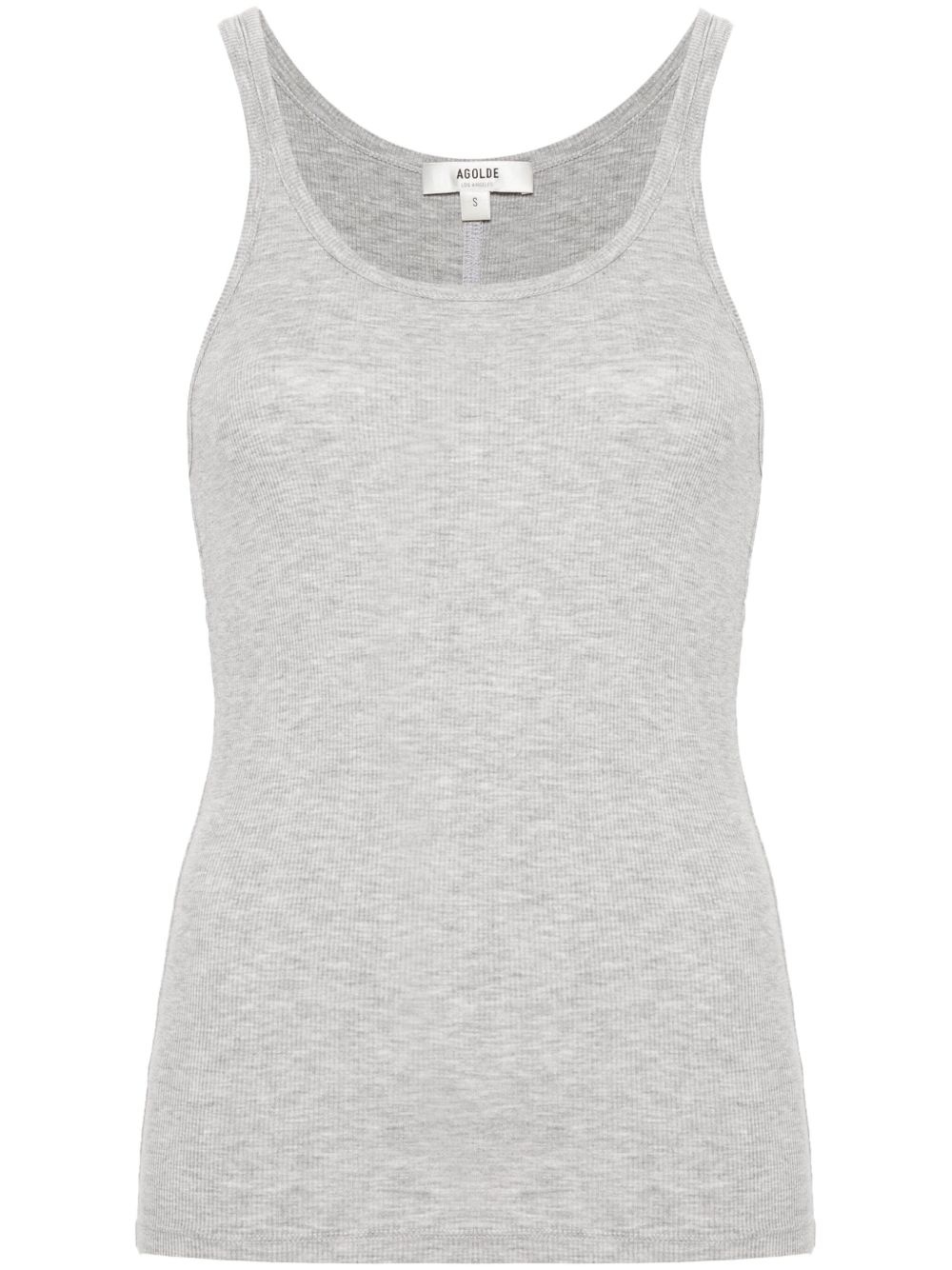 sleeveless jersey tank top Highlights - Heather grey - Stretch-jersey - Scoop neck - Sleeveless - Straight hem Made in United States Composition Modal 94%, Elastane 6% SIZE & FIT Model measurements Height 5 ft 10 in(1.78 m) Bust/Chest 32.67 in(83 cm) Hips 35.43 in(90 cm) Waist 23.22 in(59 cm) FittingInformation Designed for a close fit throughout Made from a midweight non-stretch fabric, this piece offers minimal elasticity when worn This piece fits true to size – take your usual size Washing instructions Hand Wash