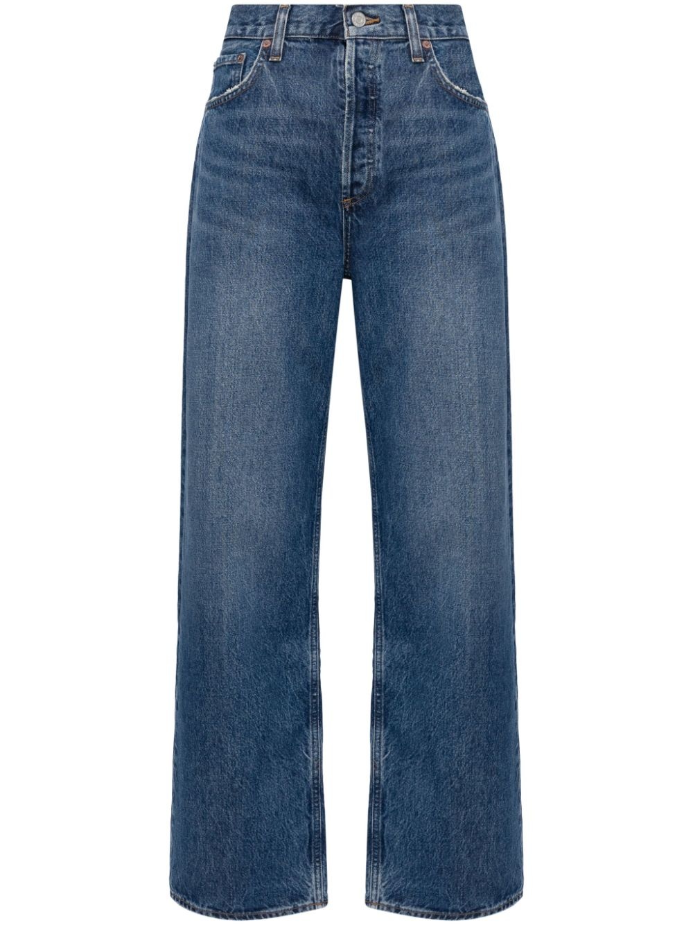 slung baggy jeans Highlights - Blue - Organic cotton blend - Denim - Concealed zip-fly and button fastening - Contrast stitching - Whiskering effect at the thighs - Belt loops - Classic five pockets - Full-length - Full-length Imported Composition Organic Cotton 67%, Lyocell 22%, Recycled Cotton 11% SIZE & FIT Model measurements Height 5 ft 10 in(1.77 m) Bust/Chest 27.95 in(71 cm) Hips 34.64 in(88 cm) Waist 22.83 in(58 cm) FittingInformation Designed with a boyfriend cut, these jeans fit close at the waist and offer a roomy fit and comfortable fit over the leg Sturdy and hard-wearing, this denim piece offers no stretch Washing instructions Machine Wash
