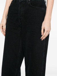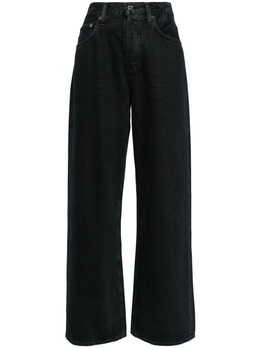 Slung jeans Highlights - Crushed black - Regenerative cotton - Denim - Wide leg - Belt loops - Classic five pockets - Front button fastening - Straight hem Imported Composition Regenerative Cotton 100% SIZE & FIT Model measurements Height 5 ft 9 in(1.76 m) Bust/Chest 31.1 in(79 cm) Hips 35.03 in(89 cm) Waist 24.4 in(62 cm) Measurement FRONT RISE 12.2 in(31 cm) INSIDE LEG 30.31 in(77 cm) HIPS 43.3 in(110 cm) WAIST 31.49 in(80 cm) FittingInformation Designed for a straight-leg fit, these jeans allow for a close fit at the waist and an unrestricted and comfortable fit over the leg Sturdy and hard-wearing, this denim piece offers no stretch Washing instructions Machine Wash