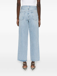V-waist jeans Highlights - Light blue - Concealed fly and button fastening - Belt loops - Classic five pockets Imported Composition Regenerative Cotton 100% SIZE & FIT Model measurements Height 5 ft 11 in(1.8 m) Bust/Chest 32.67 in(83 cm) Hips 36.22 in(92 cm) Waist 24.4 in(62 cm) FittingInformation Designed with a wide leg cut, these jeans allow for a close fit at the waist and offer a loose and roomy fit over the leg Sturdy and hard-wearing, this denim piece offers no stretch
