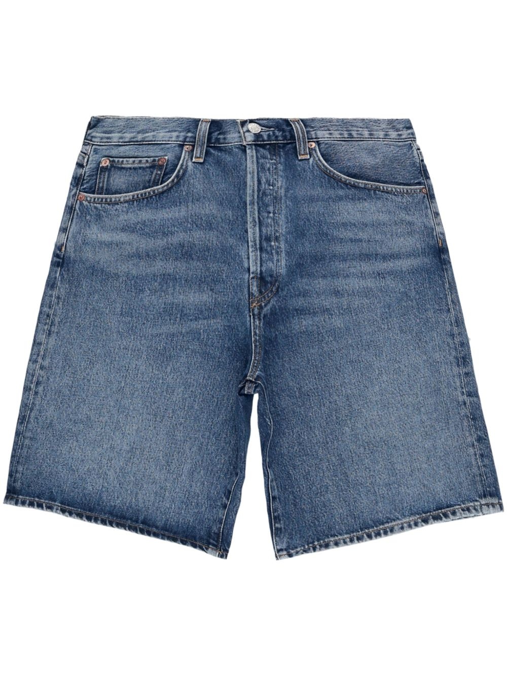 wide-leg denim shorts Highlights - Blue - Cotton - Denim - Whiskering effect at the thighs - High-rise - Wide leg - Belt loops - Front button fastening - Classic five pockets Imported Composition Regenerative Cotton 100%
